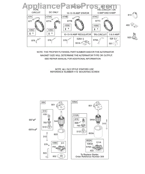 Parts for Briggs & Stratton 196702-0146-01: Alternator, Electric Starter Parts