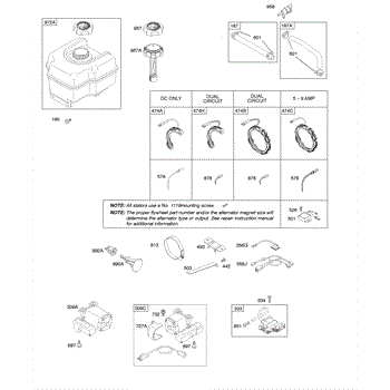 Parts for Briggs & Stratton 20A414-0113-E1: Alternator, Electric Starter, Fuel Supply, Ignition Parts