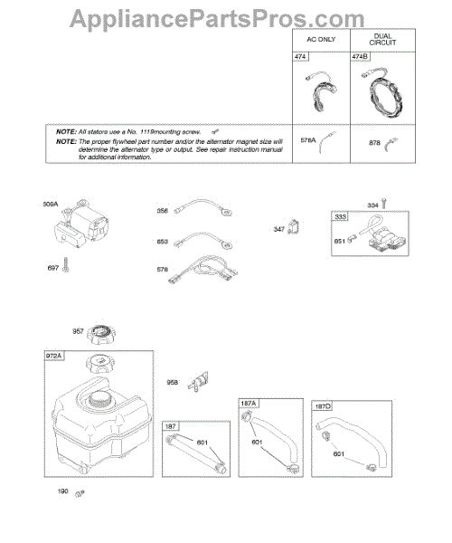 Parts for Briggs & Stratton 20C114-0270-E1: Alternator, Electric Starter, Fuel Supply, Ignition Parts