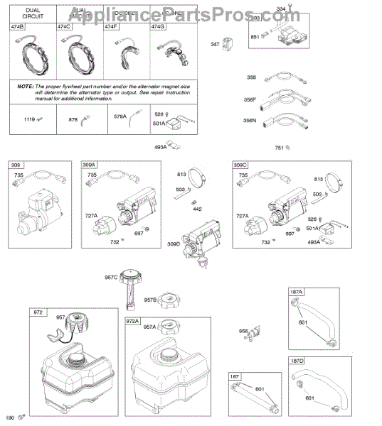 Parts for Briggs & Stratton 20M114-0140-E1: Alternator, Electric Starter, Fuel Supply, Ignition Parts