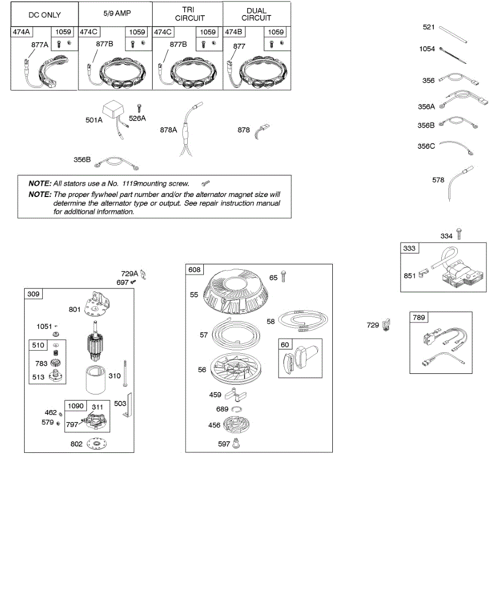 Parts for Briggs & Stratton 215707-0467-B1: Alternator, Electric Starter, Ignition, Rewind Starter Parts