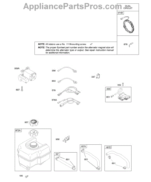 Parts for Briggs & Stratton 21A112-0100-E1: Alternator, Electric Starter, Fuel Supply, Ignition Parts