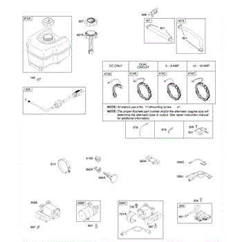 Parts for Briggs & Stratton 21B417-1117-E1: Alternator, Electric Starter, Fuel Supply, Ignition Parts