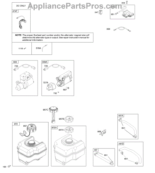 Parts for Briggs & Stratton 21Z114-0110-E1: Alternator, Electric Starter, Fuel Supply, Ignition Parts