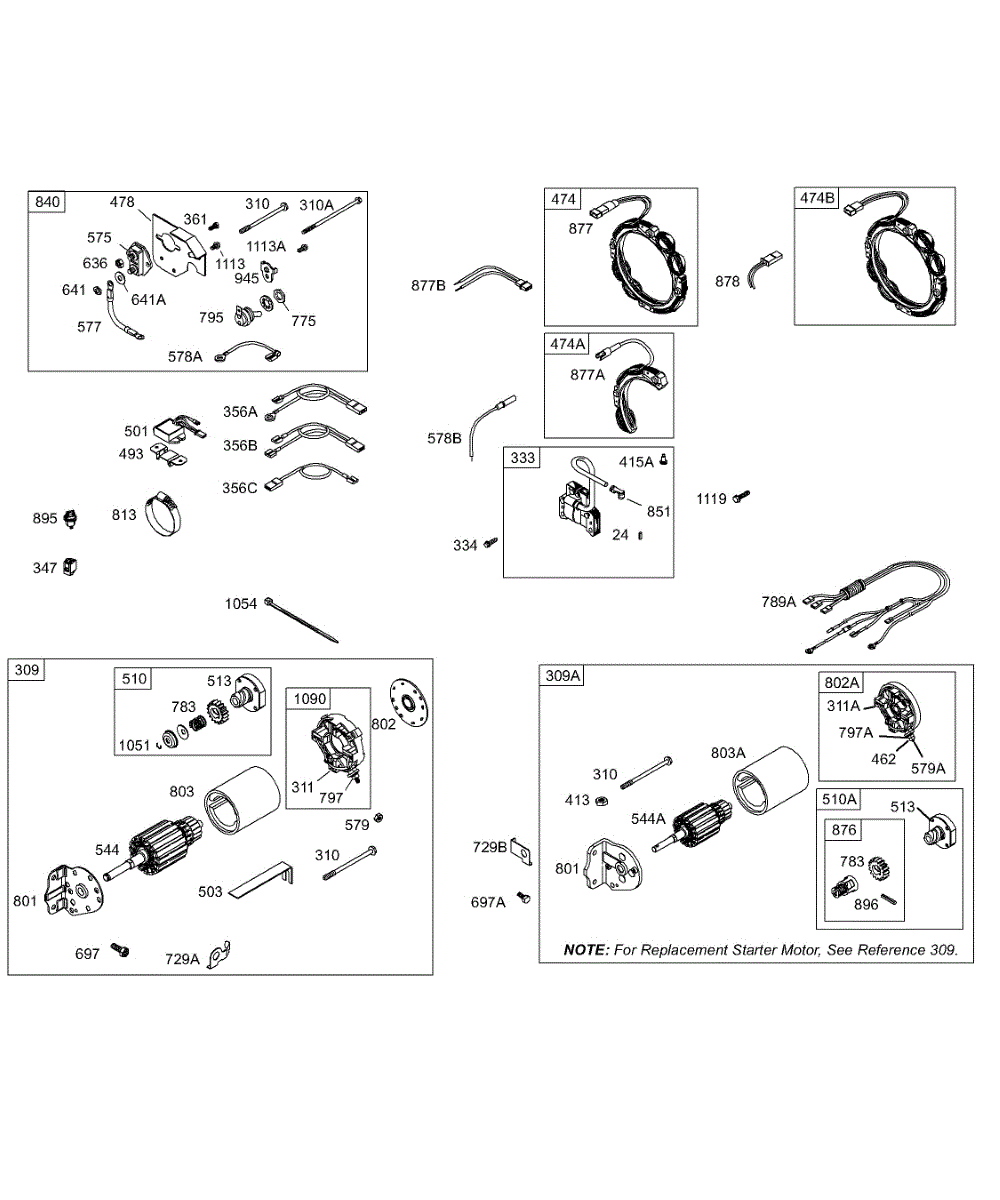 Parts for Briggs & Stratton 250412-1071-E1: Alternator, Electric Starter, Gear Reducer Parts