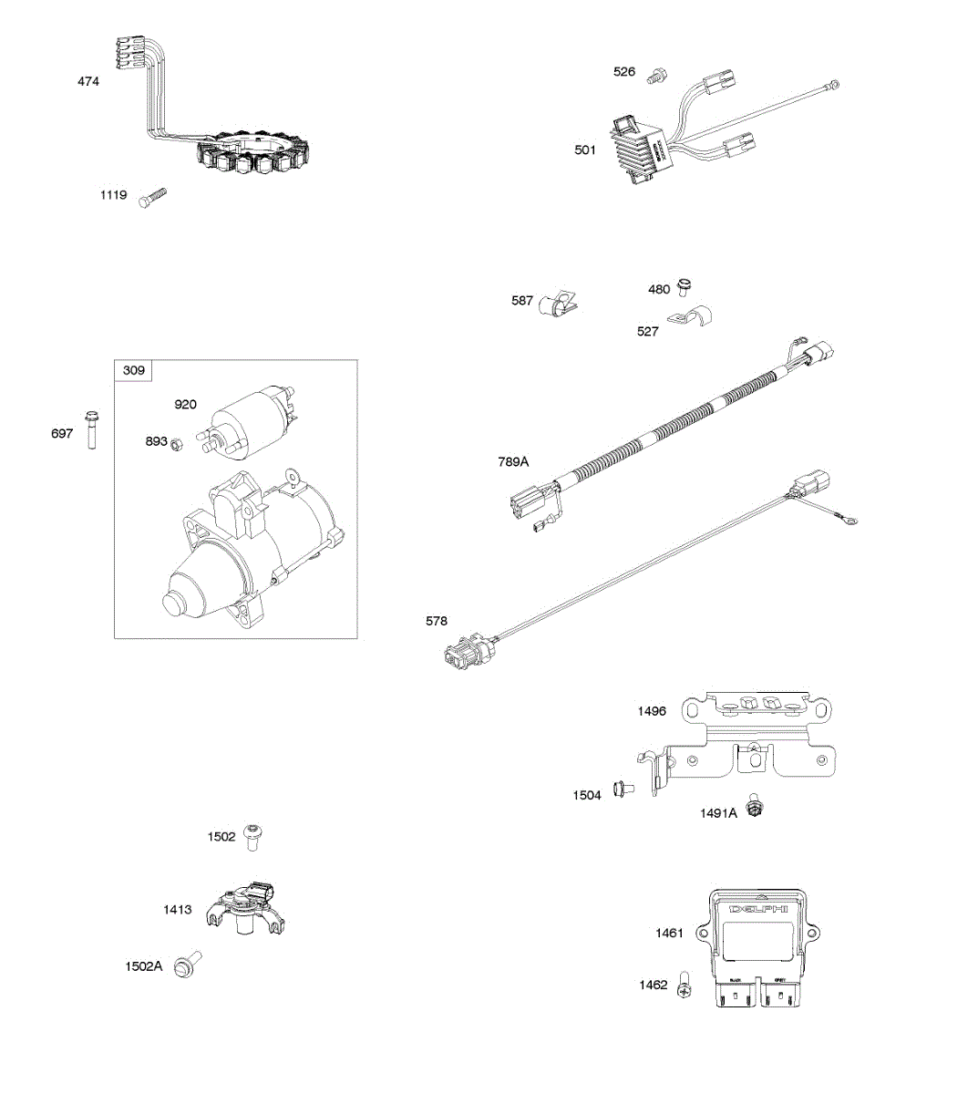 Parts for Briggs & Stratton 61E477-0007-J1: Alternator, Electric Starter, Regulator, Ecu Parts