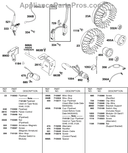 Parts for Briggs & Stratton 115432-0047-02: Alternator, Flywheel, Ignition Parts