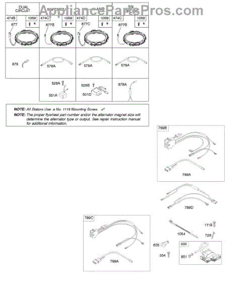 Parts for Briggs & Stratton 441677-0131-B1: Alternator, Fuel Supply, Ignition Parts