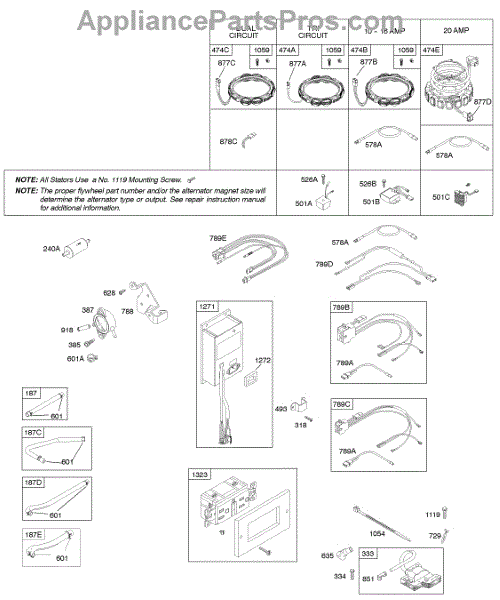 Parts for Briggs & Stratton 446777-0316-E1: Alternator, Fuel Supply, Ignition Parts