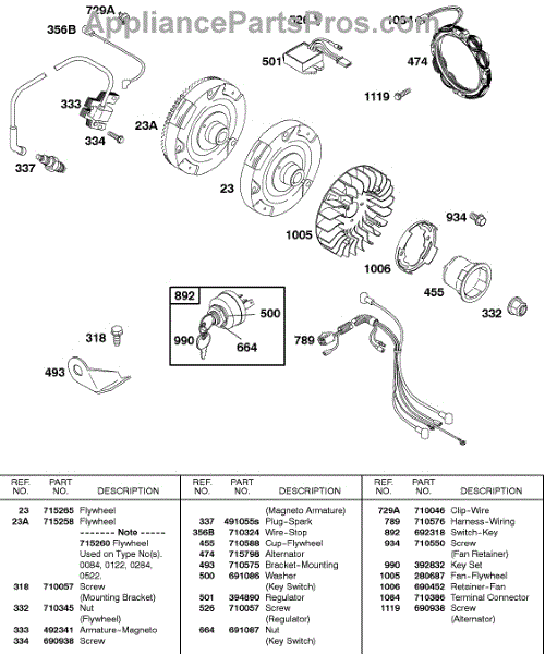 Parts for Briggs & Stratton 235437-0284-E1: Alternator, Ignition Parts