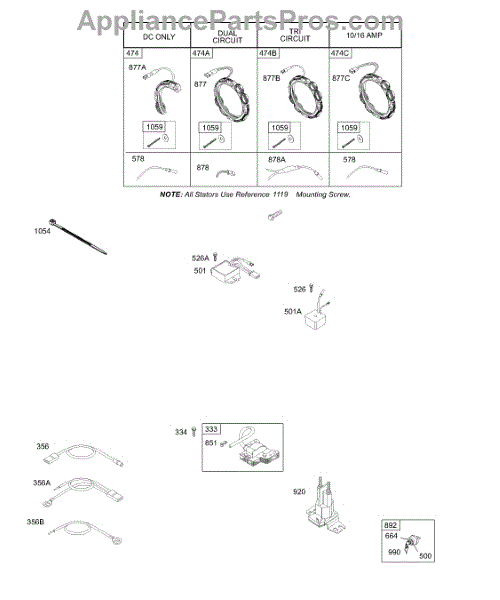 Parts for Briggs & Stratton 28M707-0137-01: Alternator, Ignition, Wires Parts