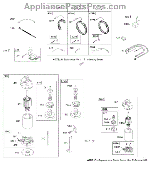Parts for Briggs & Stratton 28R707-1150-E1: Alternator, Ignition, Wires, Electric Starter Parts