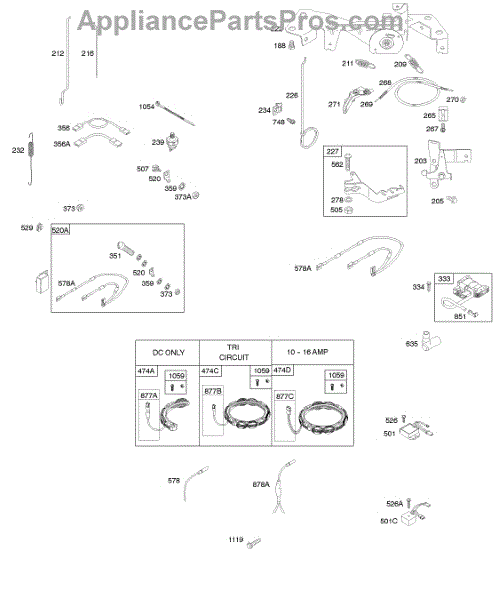Parts for Briggs & Stratton 294777-0410-01: Alternator, Ignition, Wires, Controls, Governor Springs Parts