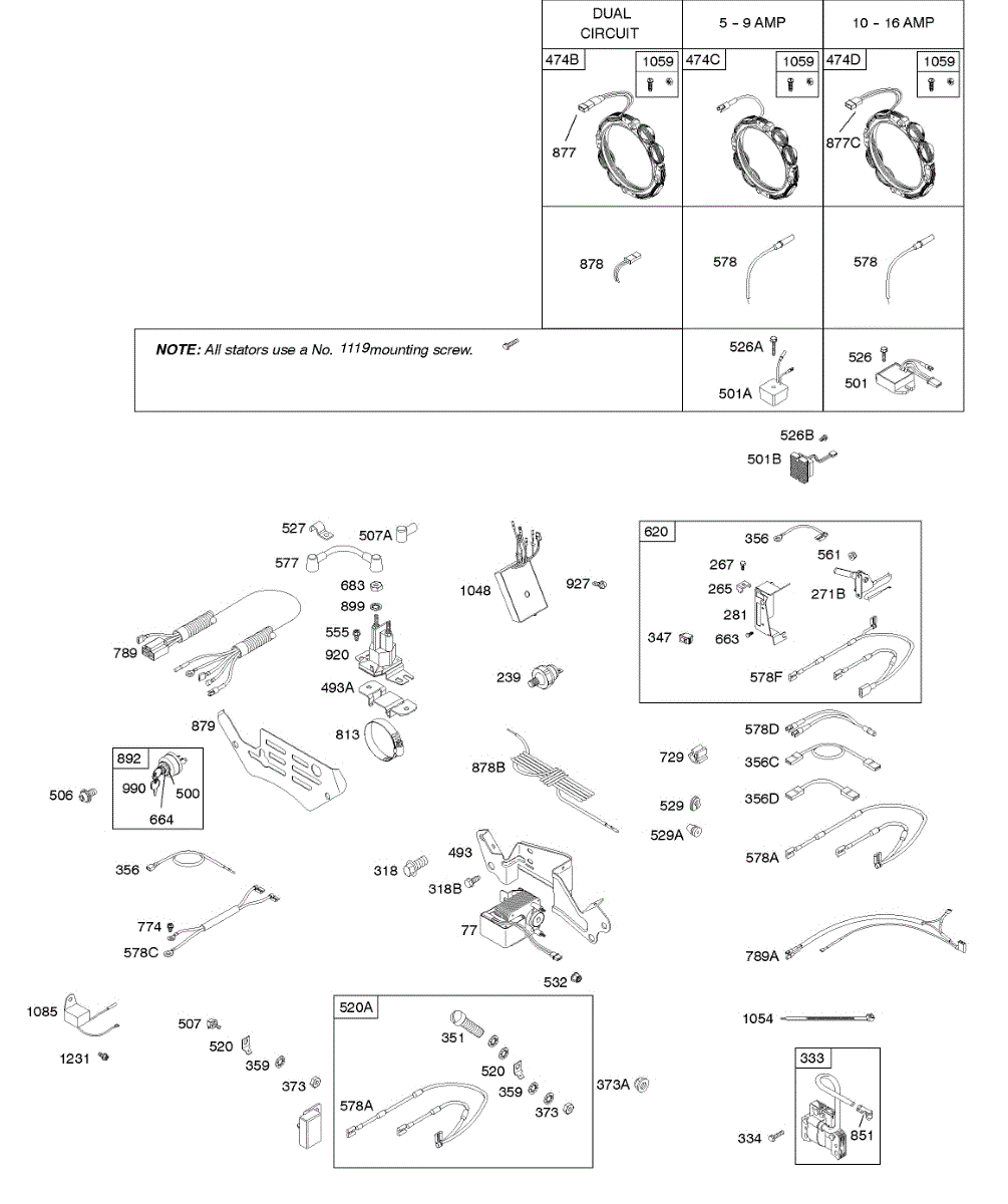 Fixes charging problems and electrical system issues in lawn and garden engines. Stabilizes voltage output to prevent battery drain and equipment failure.