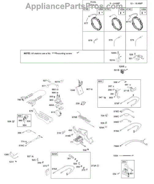 Parts for Briggs & Stratton 303447-1079-E1: Alternator, Ignition, Wires Parts