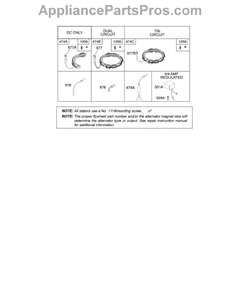 Parts for Briggs & Stratton 215902-0120-E1: Alternator Parts