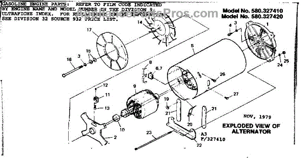 Parts for Craftsman 580327410: Alternator Parts