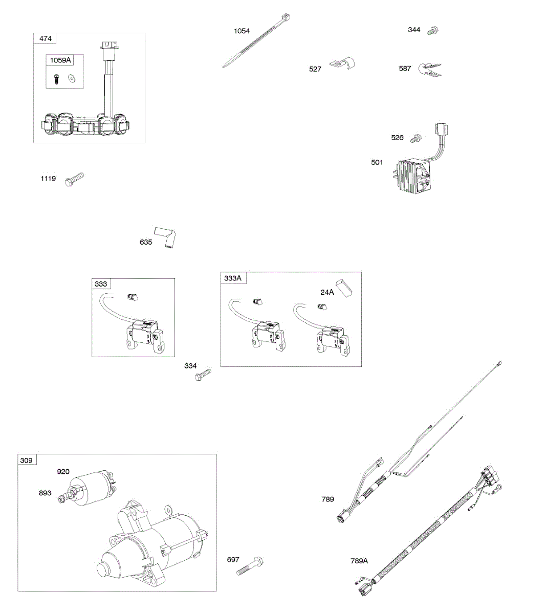 Parts for Briggs & Stratton 543277-0112-01: Alternator, Regulator, Electric Starter, Harness's Parts