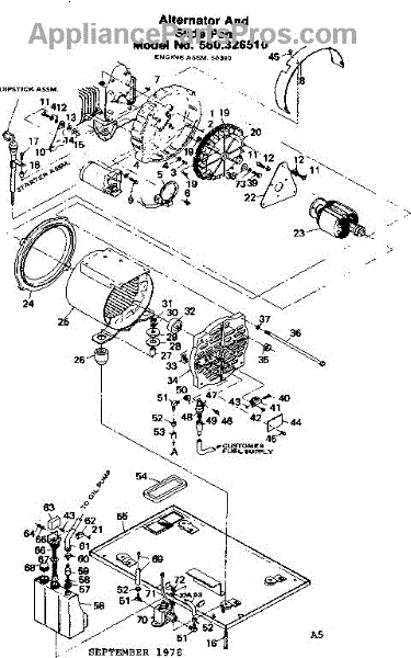 Parts for Craftsman 580326510: Alternator And Slide Pan Parts