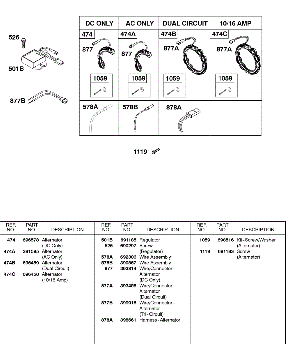 Parts for Briggs & Stratton 243431-0174-99: Alternator, Wire Assemblies Parts