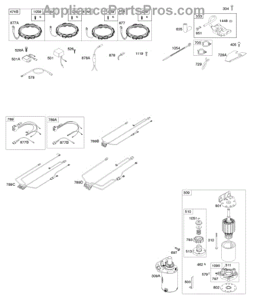 Parts for Briggs & Stratton 445677-5115-B1: Alternator, Wire Harness, Starter, Ignition Parts