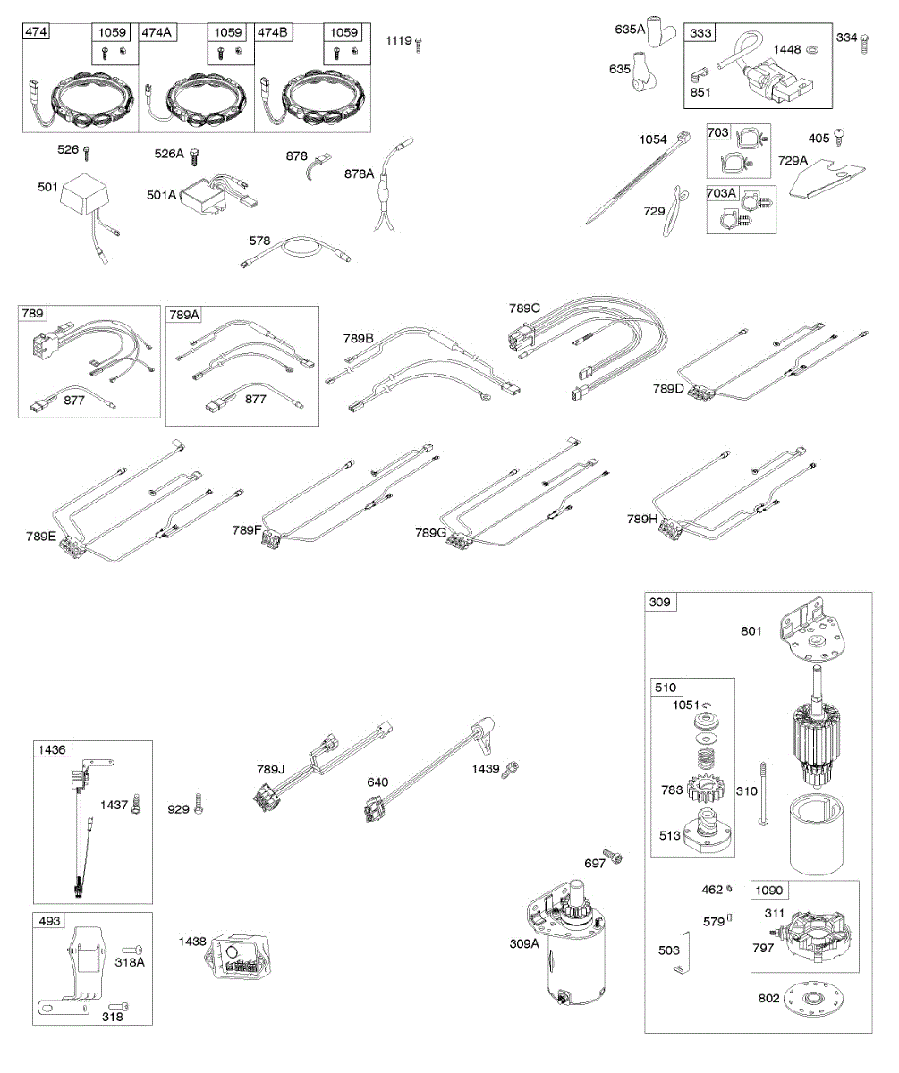 Parts for Briggs & Stratton 44P777-0117-B1: Alternator, Wire Harness, Starter, Ignition, Efm Parts