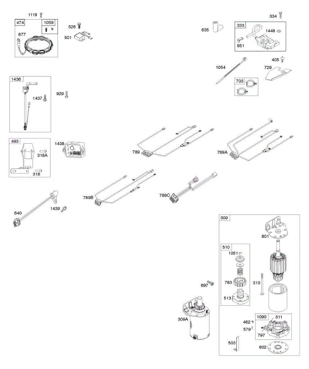 Parts for Briggs & Stratton 49M777-0120-G1: Alternator, Wire Harness, Starter, Ignition Parts
