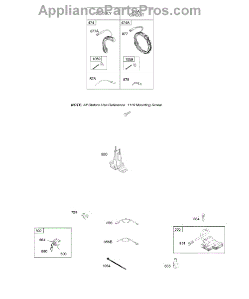 Parts for Briggs & Stratton 28D707-1140-E1: Alternator, Wires, Ignition Parts