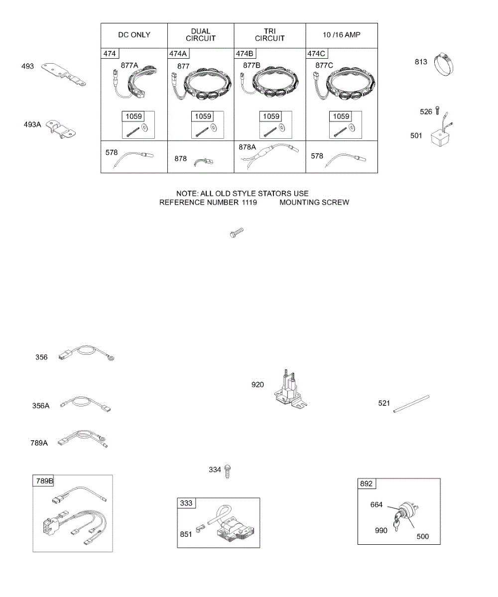 Parts for Briggs & Stratton 28N707-1141-E1: Alternator, Wires, Magneto, Key Switch Parts