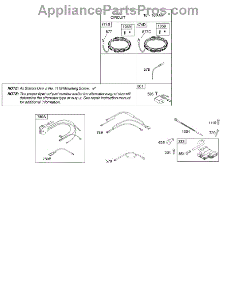 Parts for Briggs & Stratton 407677-0259-E1: Alternators / Ignition Parts