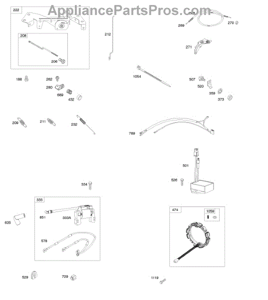 Parts for Briggs & Stratton 359775-0110-E1: Armature, Alternator, Regulator, Control Bracket Parts