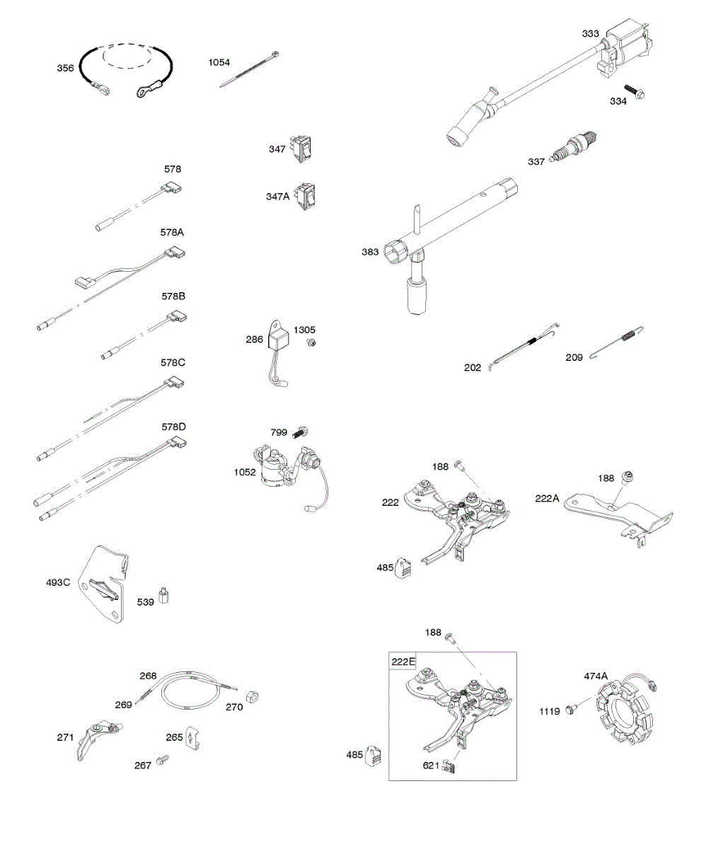 Control wire casing for lawn and garden engines. Protects and guides throttle or choke control cables. Replace if cracked, split, or missing.