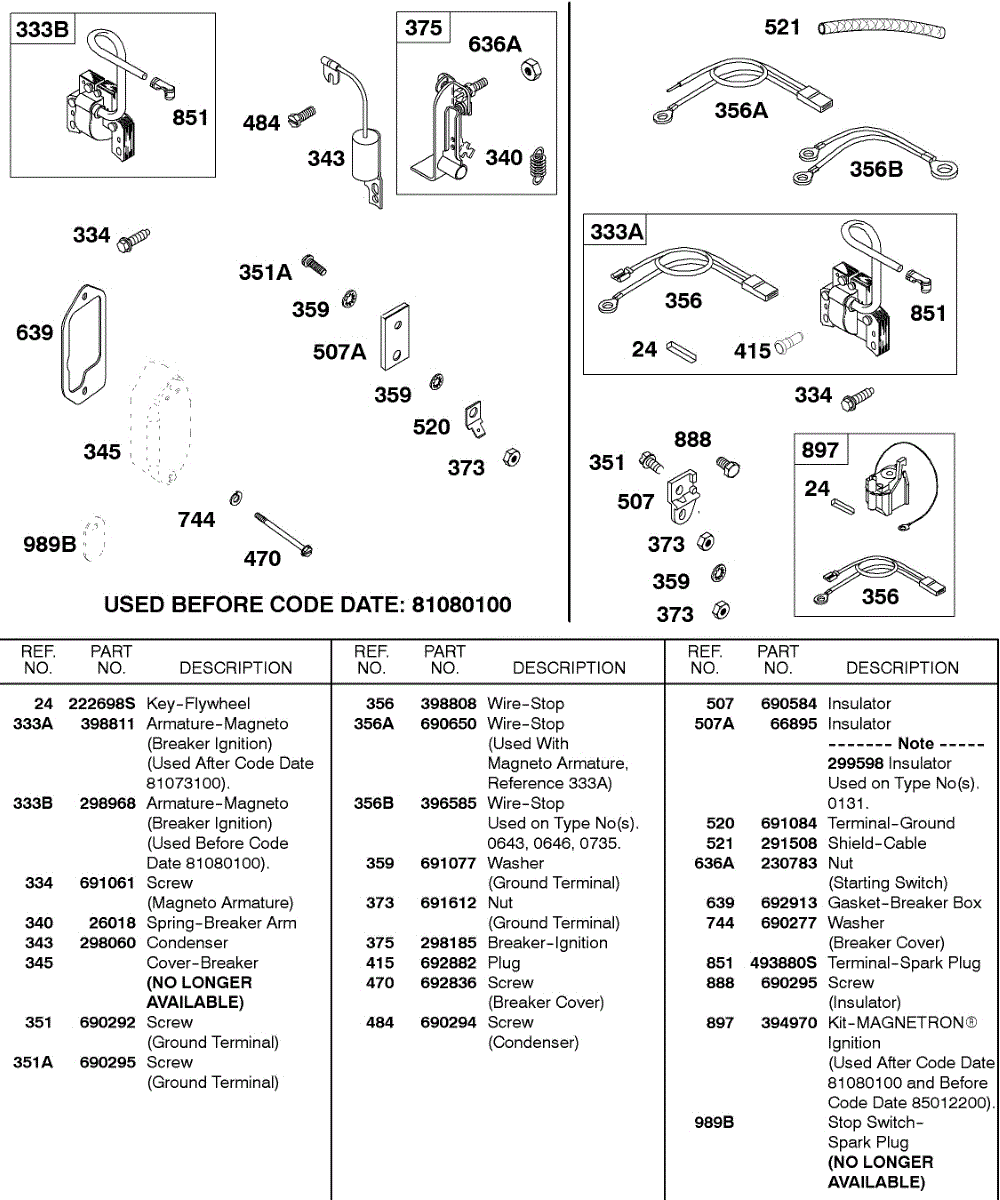 Parts for Briggs & Stratton 326431-0328-99: Armatures, Wires Parts
