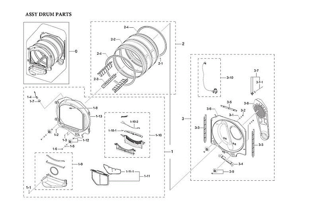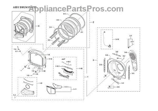 The Drum Assembly is an OEM replacement part for Samsung electric dryers. It is the core component that rotates clothing during tumble drying cycles.