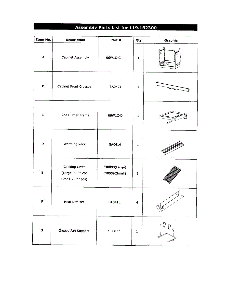 Parts for Kenmore 119.162300 (119162300, 119 162300): Assembly Parts