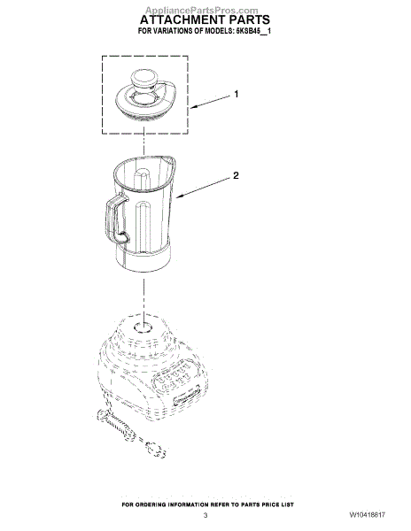 Parts for Kitchenaid 5KSB45AWH1: 02 - Attachment Parts