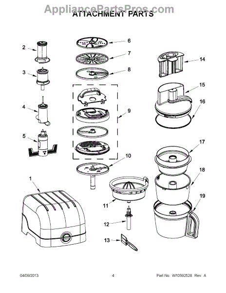 Grating disc attachment for food processors. Installs on the drive shaft inside the work bowl. Replace if cracked, warped, or worn cutting edges.
