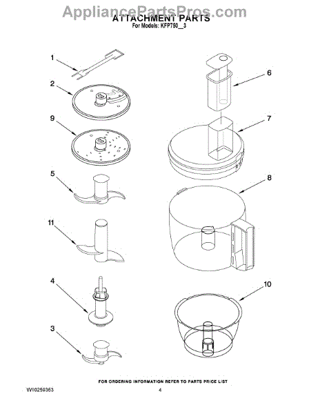 Parts for Kitchenaid KFP750PK3: 02 - Attachment Parts