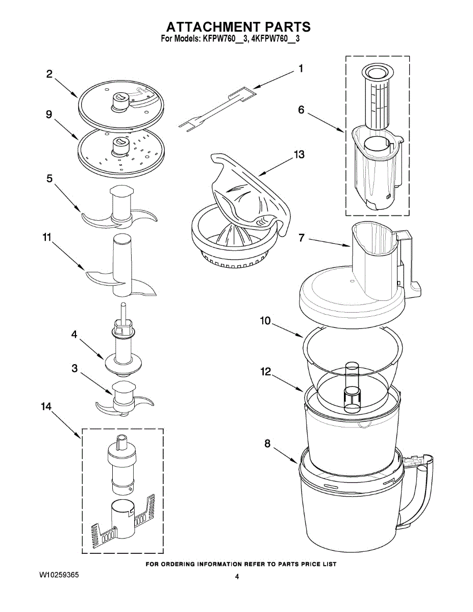 Parts for Kitchenaid KFPW760OB3: 02 - Attachment Parts