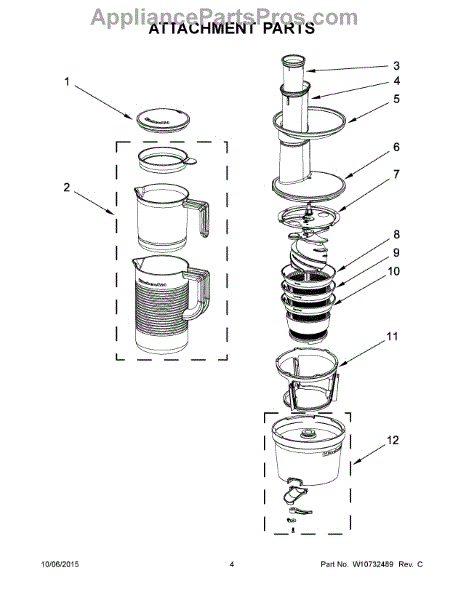 Parts for Kitchenaid 5KVJ0111EMS0: 03 - Attachment Parts