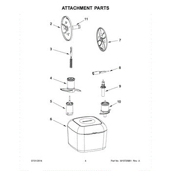 Color: white. This attachment measures about 6 inches in diameter including the blades, and 4 inches high.