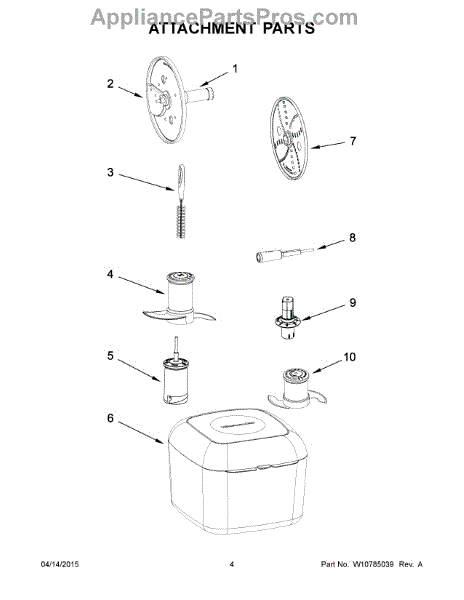 Color: white. This attachment measures about 6 inches in diameter including the blades, and 4 inches high.