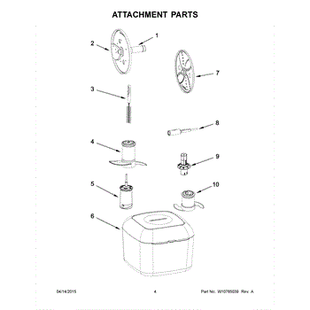 Color: white. This attachment measures about 6 inches in diameter including the blades, and 4 inches high.