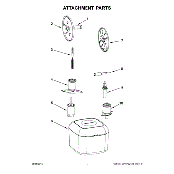 Color: white. This attachment measures about 6 inches in diameter including the blades, and 4 inches high.