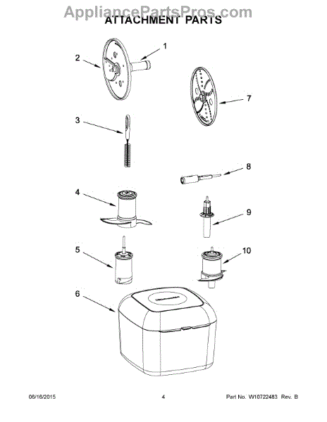 Color: white. This attachment measures about 6 inches in diameter including the blades, and 4 inches high.