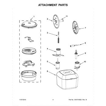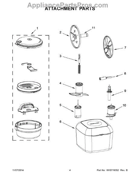 Color: white. This attachment measures about 6 inches in diameter including the blades, and 4 inches high.