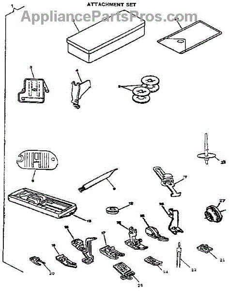 Parts for Singer 9010: Attachment Set Parts