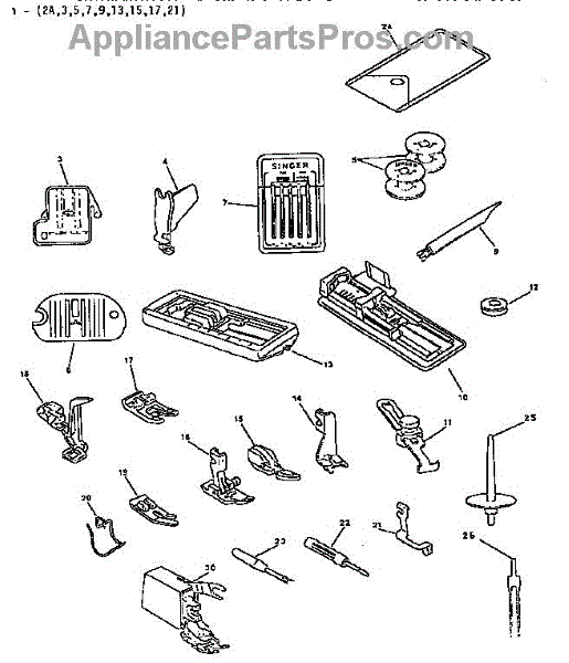 Parts for Singer 9044: Attachment Set Parts