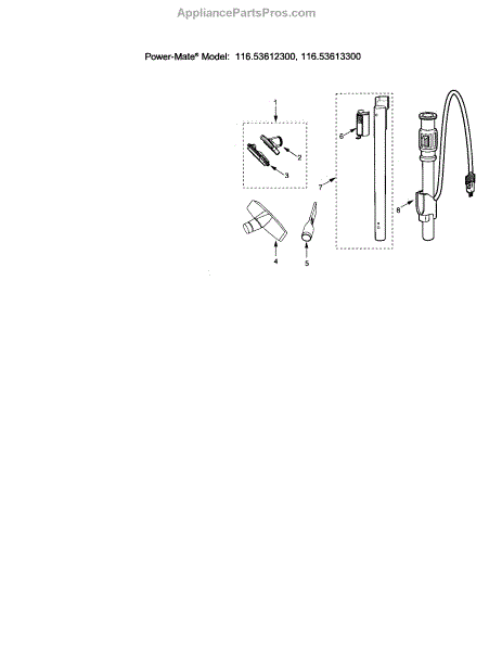 Parts for Kenmore 116.23612300 (11623612300, 116 23612300): Attachments Parts