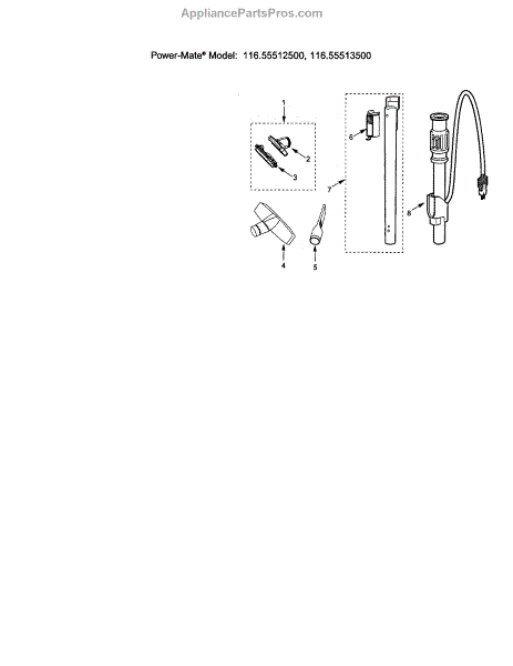 Parts for Kenmore 116.25512500 (11625512500, 116 25512500): Attachments Parts